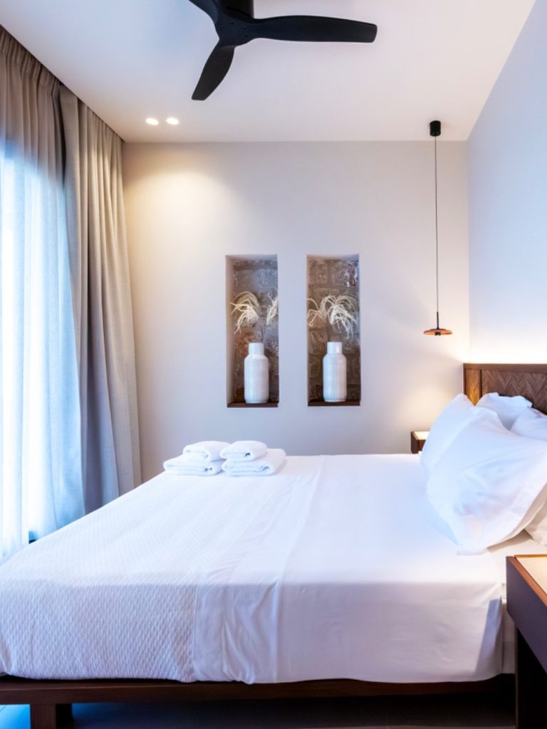 3 bedrooms are on the right wing of the villa. 2 bedrooms are on the first floor with acces to the balcony and amazing rooftop terras with jacuzzi.