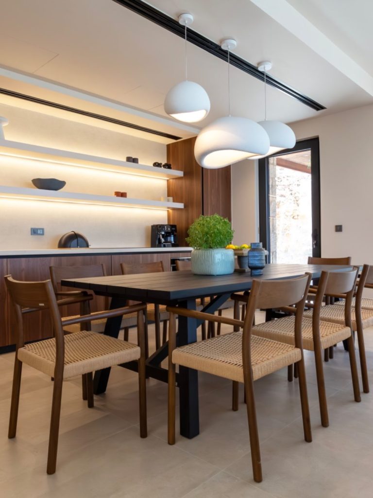 Imagine enjoying a delightful glass of local wine in your rooftop terrace jacuzzi, watching a movie together in the open-air cinema, or preparing a fantastic dinner in the outdoor kitchen. You can savor this meal at a table that seats 12 people, complete with an outdoor fireplace for cooler evenings.