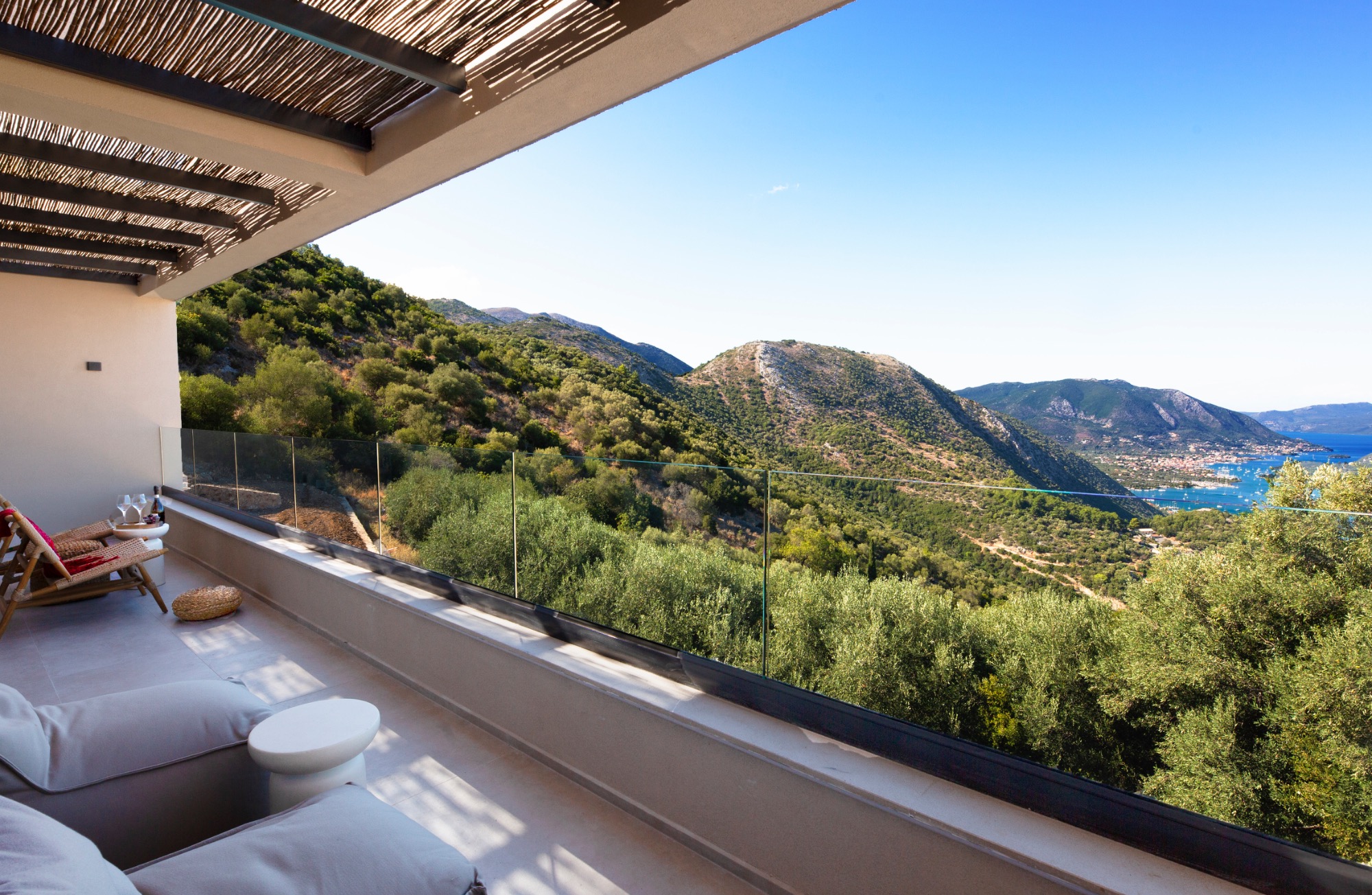 Wake up to panoramic views of shimmering azure waters across the lonian Archipelagos and the Princes slands of Lefkada, spend your days relaxing by the unique private pool, bask in magical starlit evenings in the jacuzzi with your glass of fragrant wine or make it a magical evening for all your loved ones with the magical experience of outdoor cinema that will remain as the memory everyone will share forever. This elegant retreat, Villa Galinia combines modern luxury and timeless beauty for an unforgettable and mesmerizing experience.